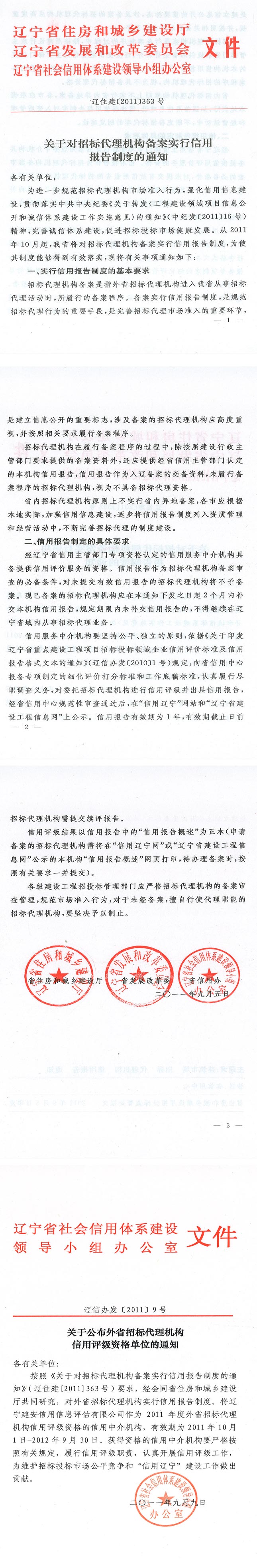 【概要描述】关于对招标代理机构备案实行信用报告制度的通知